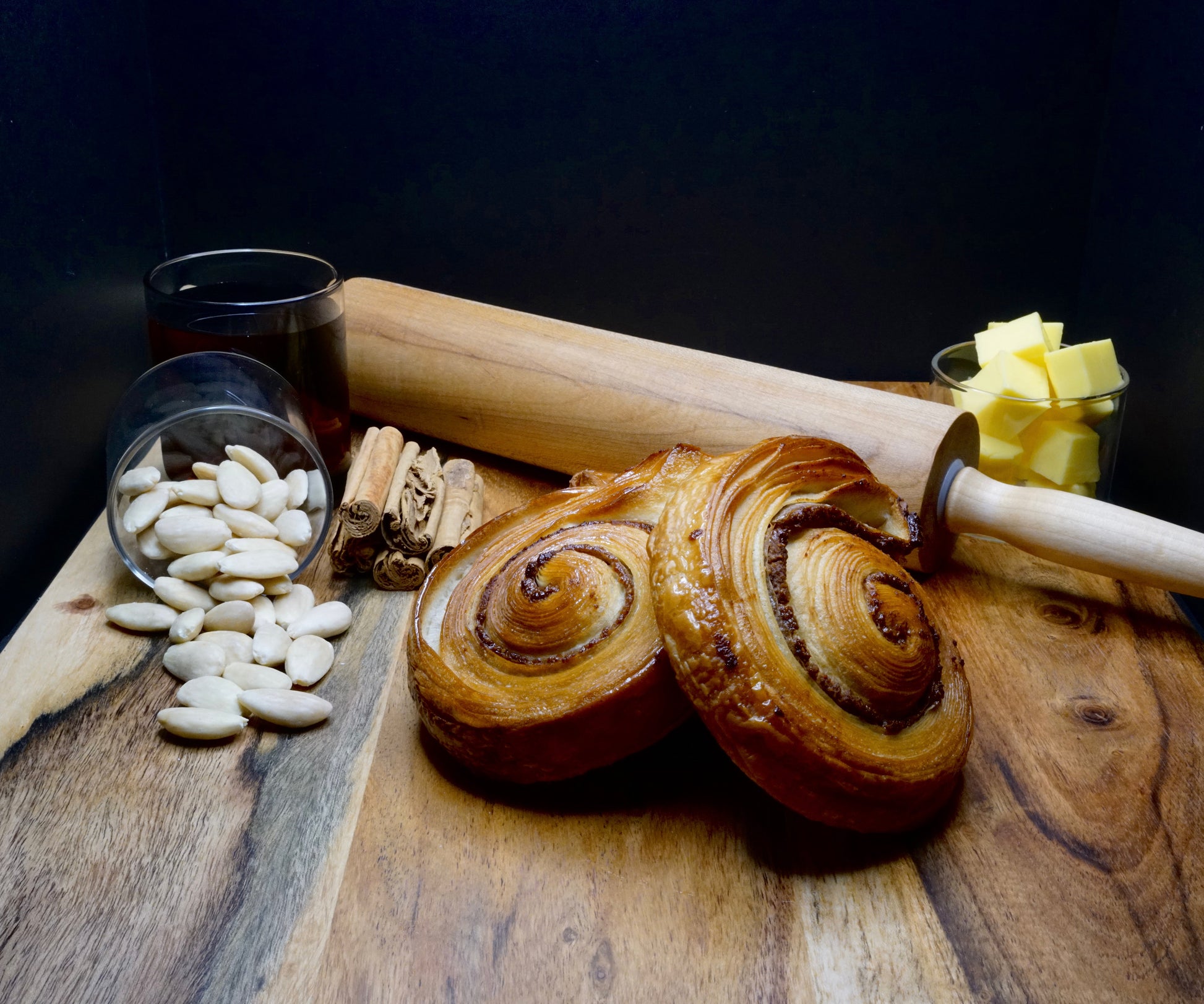 A Light and Flakey 100% New Zealand Butter Cinnamon Scroll with a Thick Sticky Cinnamon Filling.